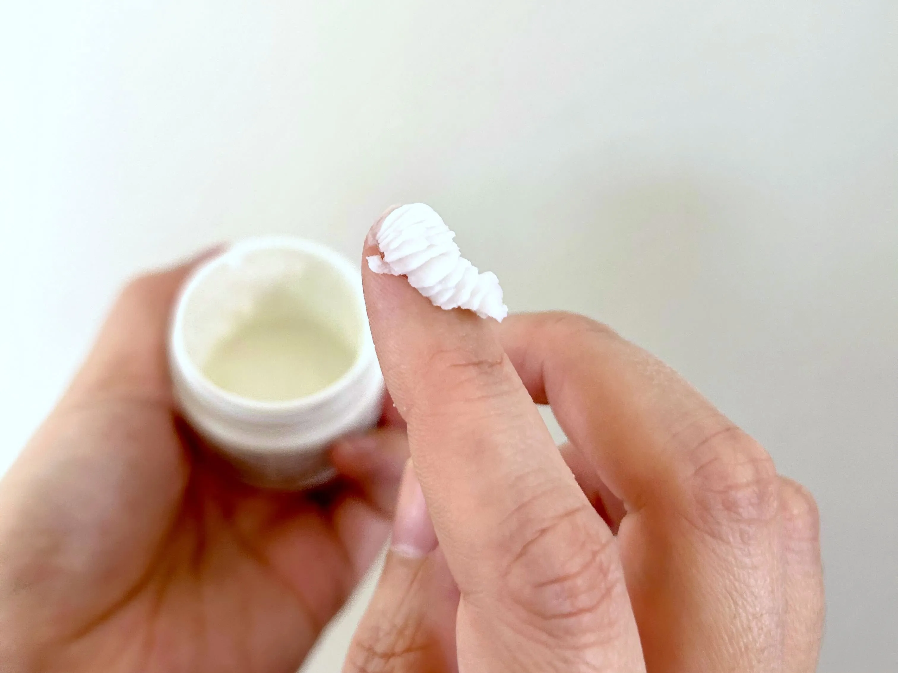 以前使用していた別のヘアバームも同じだったので、仕方がない、爪へのバームの入り具合でそろそろ切らなきゃな…などと勝手に爪切りの目安にしていましたが、その話を社内でした際に、同じくヘアバームを愛用しているスタッフから目からウロコの技を教えてもらいました!