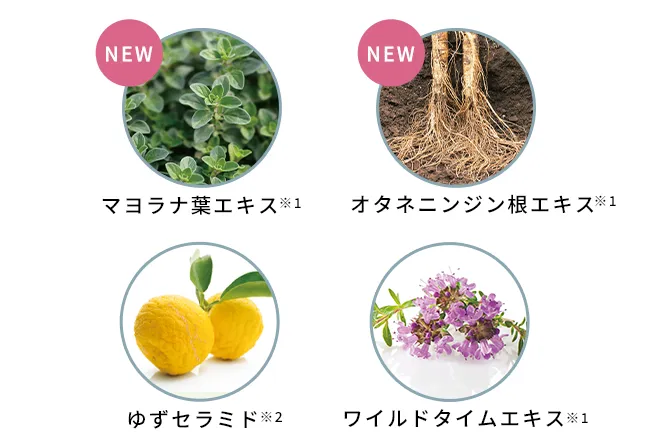 マヨラナ葉エキスやオタネニンジン根エキスなどの美容液成分を追加配合しました。
