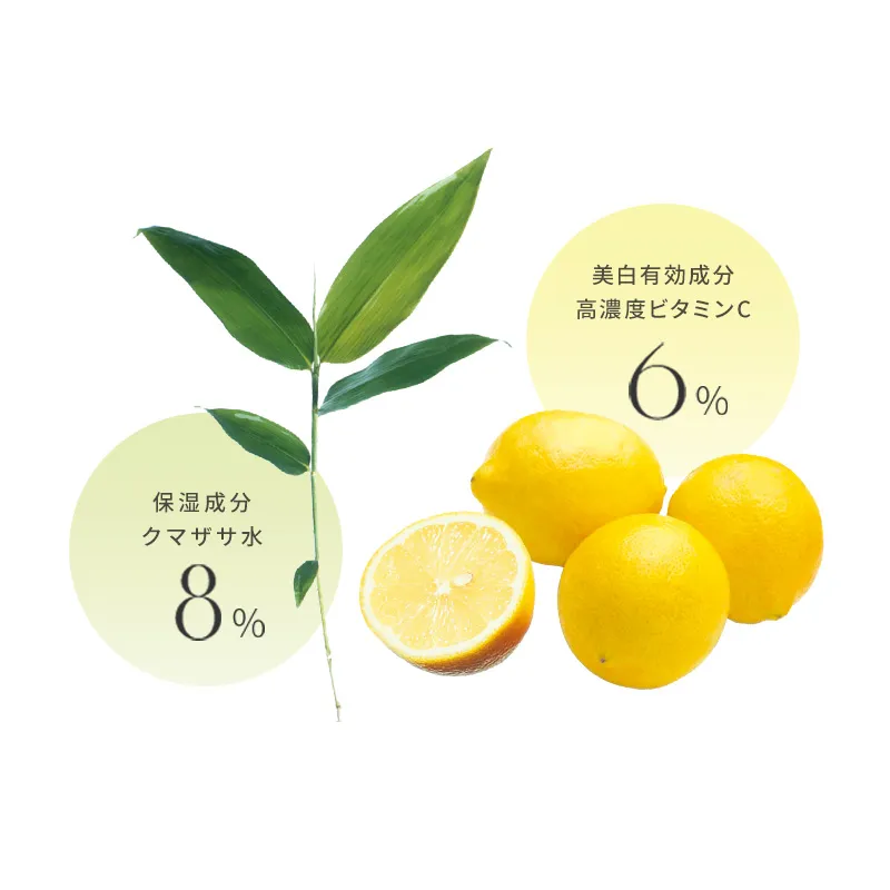 薬用ホワイトレディは、美白・うるおいをダブルで叶えるすぐれもの。高濃度に配合したビタミンC誘導体※2と、天然のミネラルを豊富に含むクマザサ水の絶妙な配合バランスが、しっかり透明感をサポート。マイルドでみずみずしい使用感と、つけた後の肌表面がもっちりしっとりするところも気に入っています。