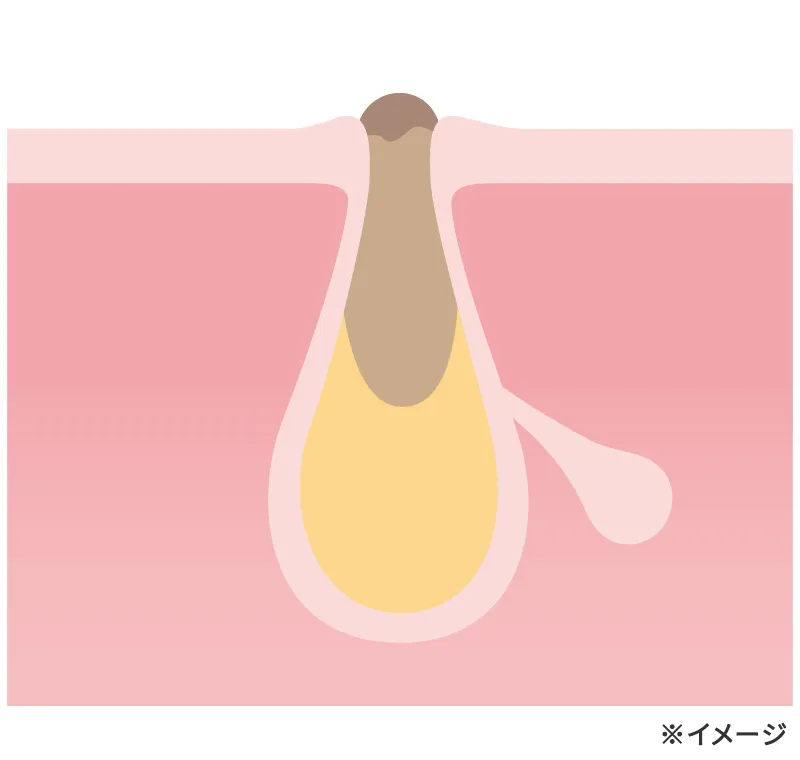 古い角質や皮脂などが毛穴につまってできた角栓が、酸化して黒くなった状態。皮脂の分泌が多いTゾーンに起こりやすく、ポツポツと黒く見える毛穴がいちごの種のように見えることから、毛穴が目立つ鼻を「いちご鼻」と呼ぶことも。