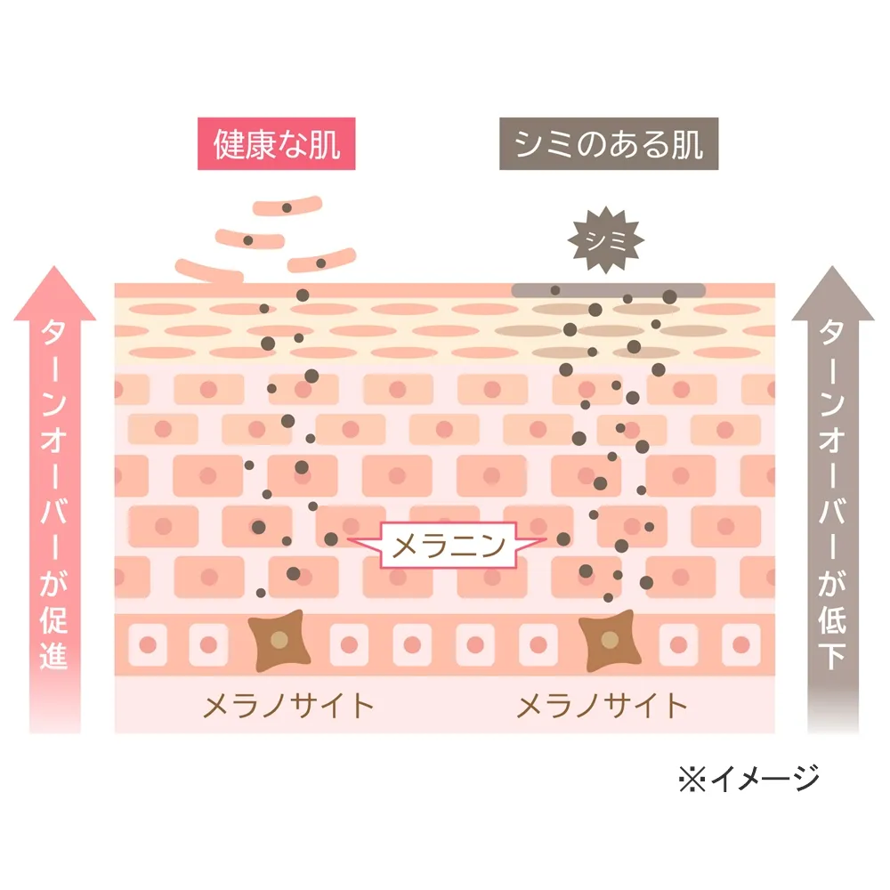 歳とともに女性ホルモンは減少し、皮脂・水分量が低下し、それゆえに肌が乾燥しやすくなります。また、肌のターンオーバーが乱れやすくなります。そのため、シミ、くすみ、シワ、ハリ不足が目立ちやすくなるのです。