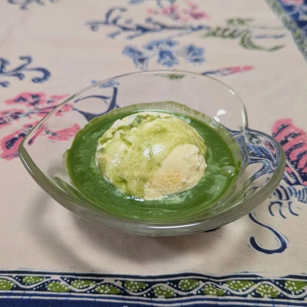 そんな時はアイスに少なめの水に溶かした「酵素熟成ハトムギ青汁」をかけてアフォガート風に。