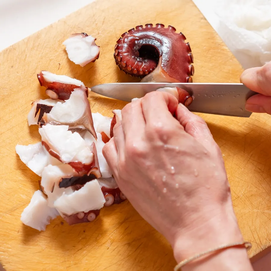 たこは食べやすく小さめの乱切りにする