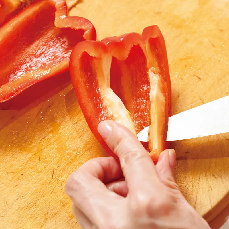 パプリカは半分に切って種を取り乱切りに。