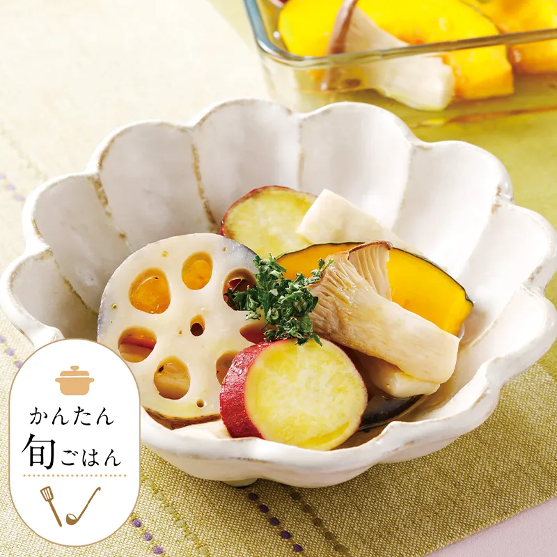 たっぷりの野菜ときのこを簡単においしくいただけるメニューです。見た目も華やか、おもてなしにもおすすめです。