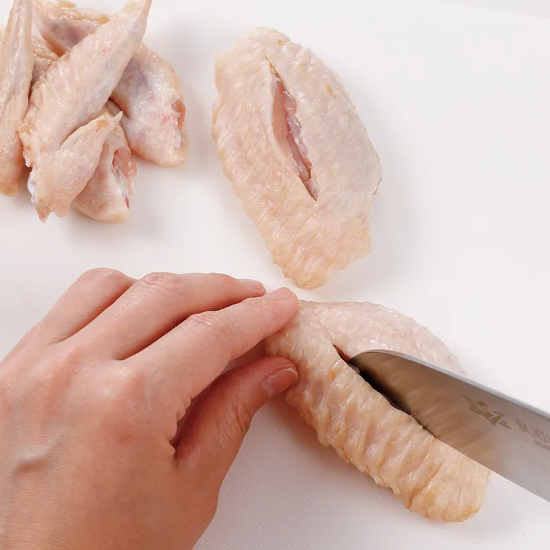 手羽先は関節で切り離し、骨の間に切り込みを入れる。