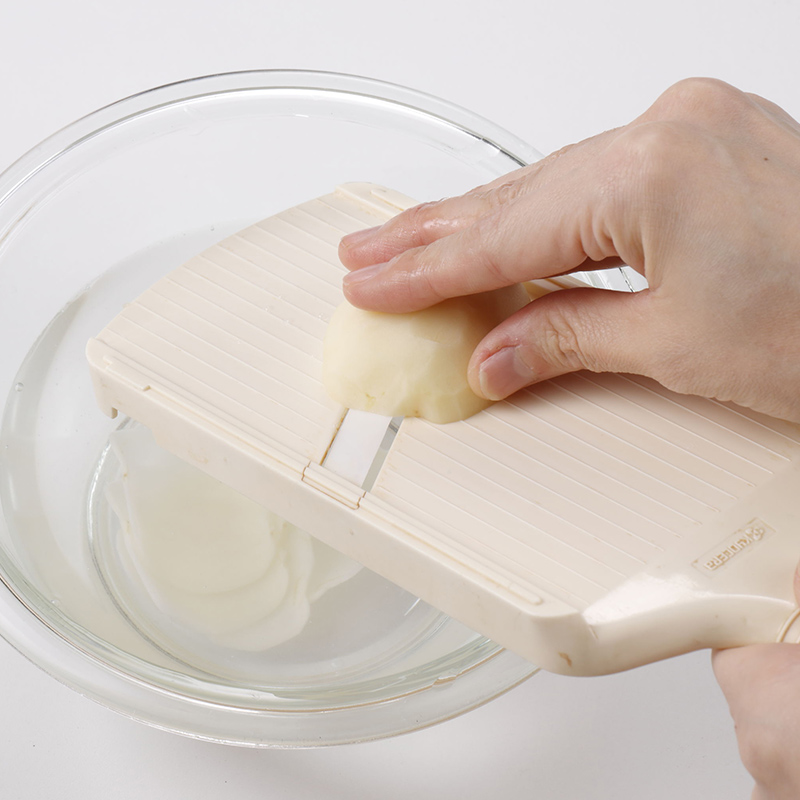 新じゃがいもは皮をむき、スライサーで薄切りにする。