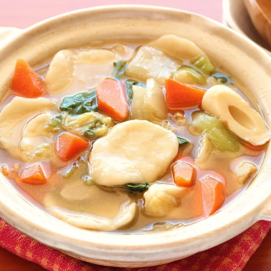 小麦粉を使った生地を平らな団子状にして、野菜や肉と煮たソウルフード。「だご」は熊本弁で団子のこと!