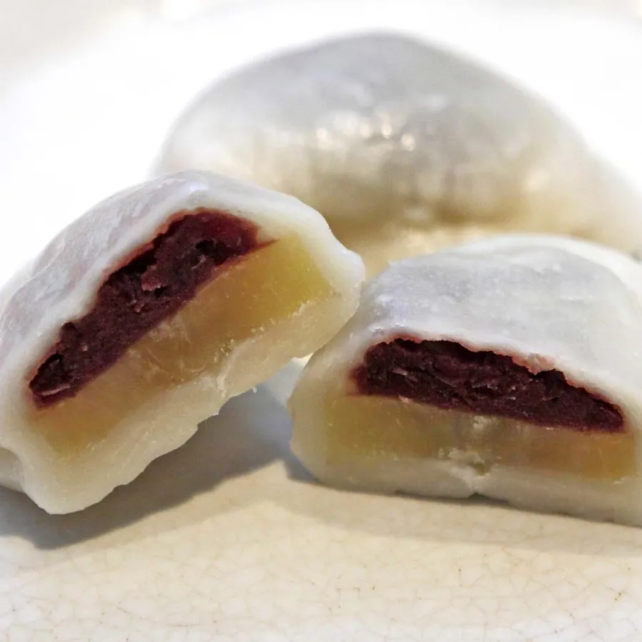 小麦粉を練って伸ばした生地に輪切りにしたさつまいもと粒あんを包んで蒸した、昔ながらの素朴な風味の郷土菓子。