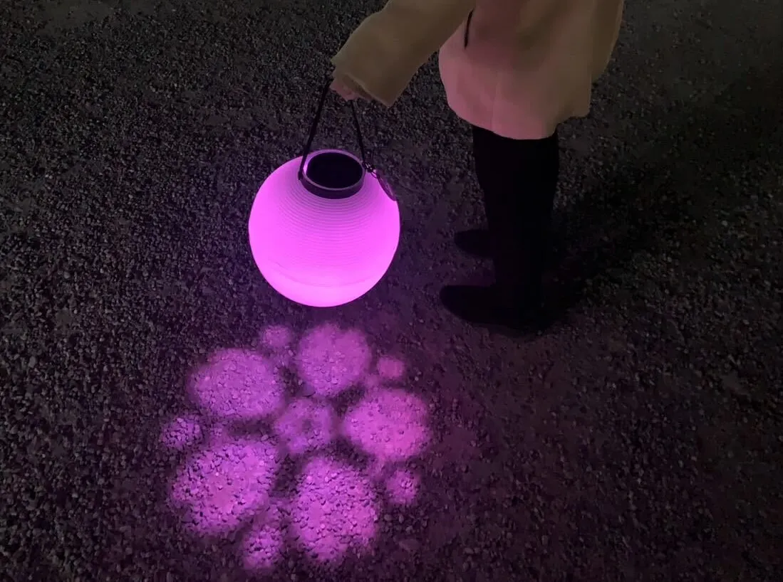 地面に照らしてみると、ライトの形が桜型になっていました✿