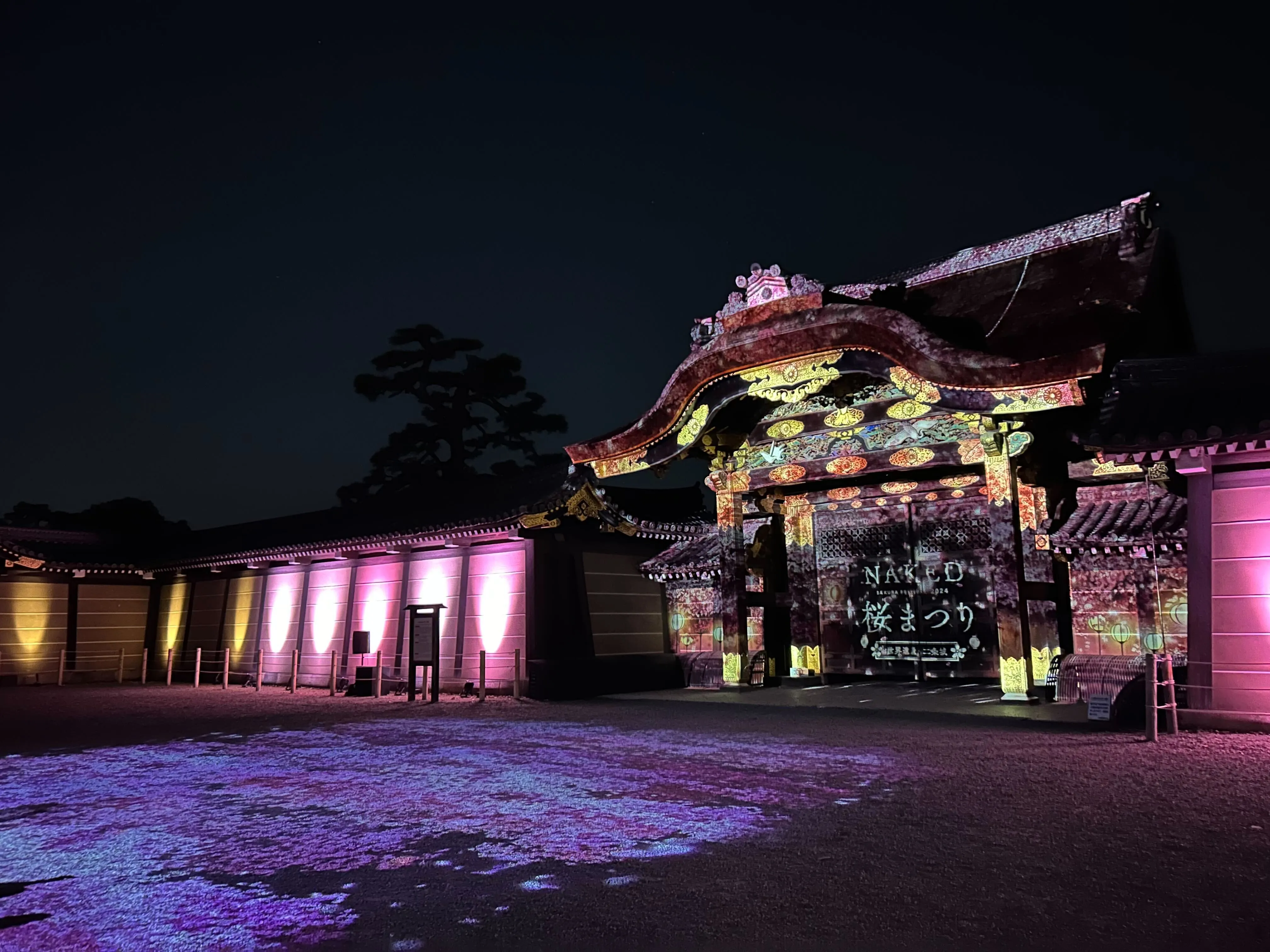 しかし、せっかく京都に来たので何か春らしいイベントはないか検索してみたところ、二条城で夜に「桜まつり」の開催情報を入手。夕方から敷地内がライトアップされて綺麗とのことで、当日券を購入してさっそく行ってみることにしました!