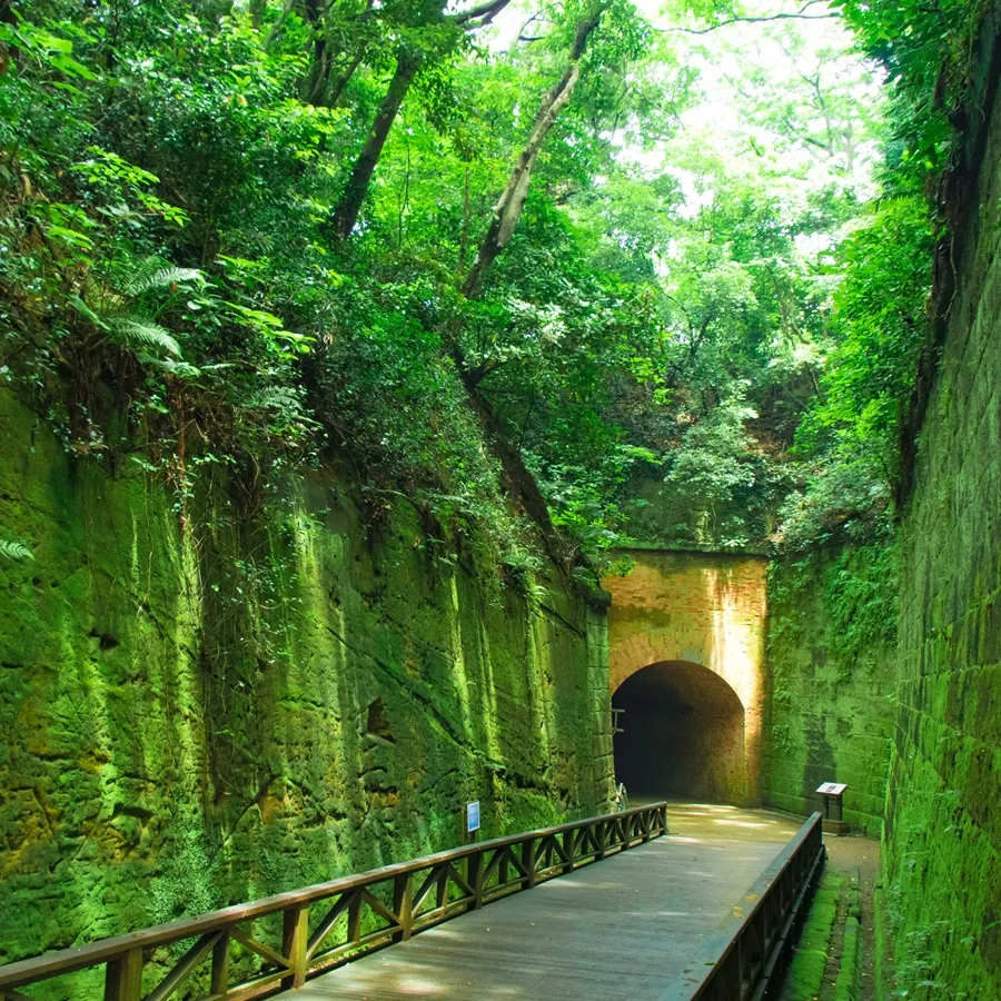 東京湾に浮かぶ無人島で旧日本軍の要塞として長らく一般人の立ち入りが禁止されていたため、豊かな自然が多く残ります。レンガ積みのトンネルや砲台跡などの旧軍施設の様子は、映画「天空の城ラピュタ」の世界に似ていると話題になりました。