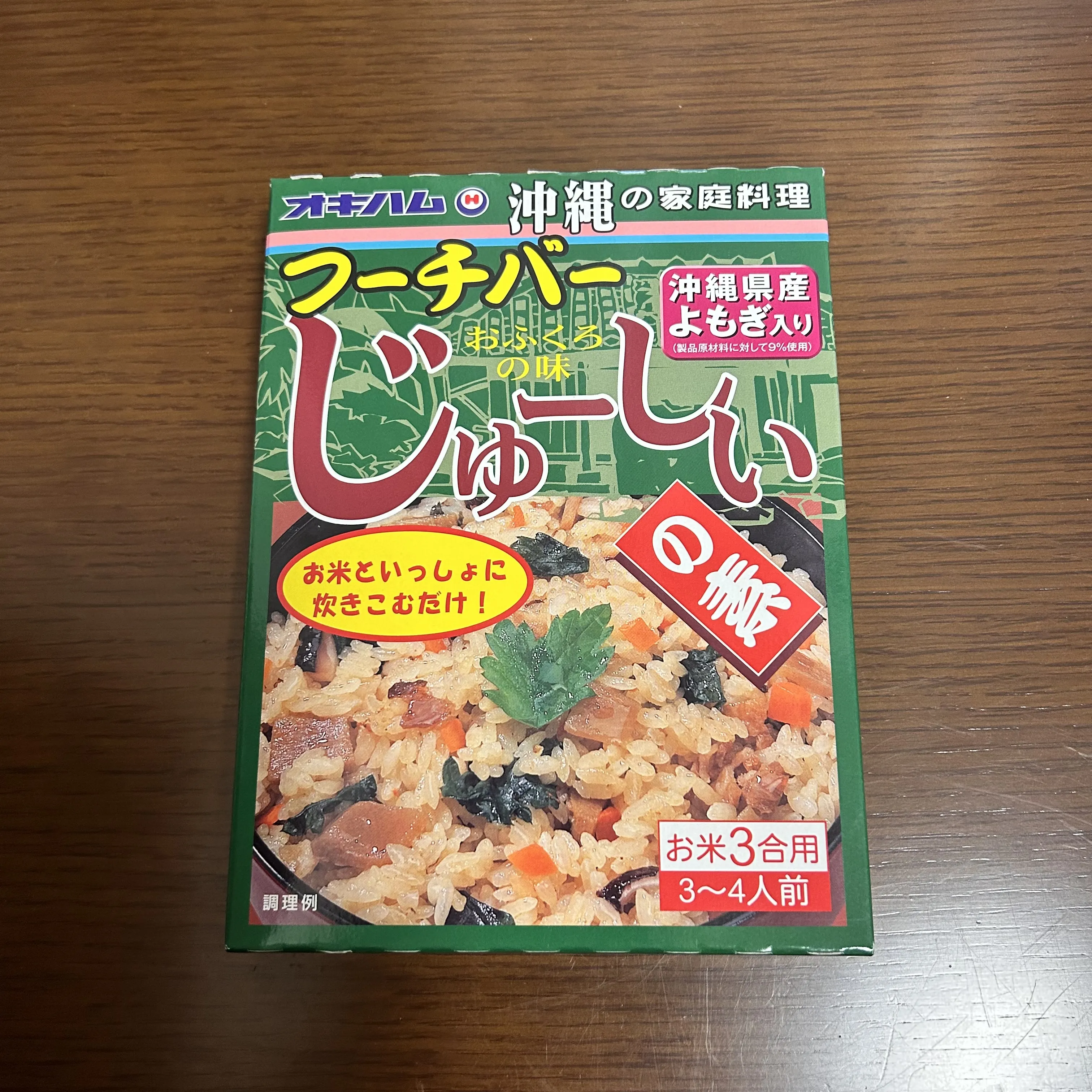 沖縄の炊き込みご飯「じゅーしぃ」にフーチバー(よもぎ)が入ったフーチバーじゅーしぃの素。ヨモギの苦さが癖になります。