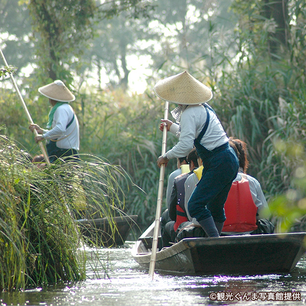 利根川に平行して流れる谷田川で、船頭の操る揚舟に乗り、約1.5kmのコースを1時間ほどかけてゆったりと周遊できます。