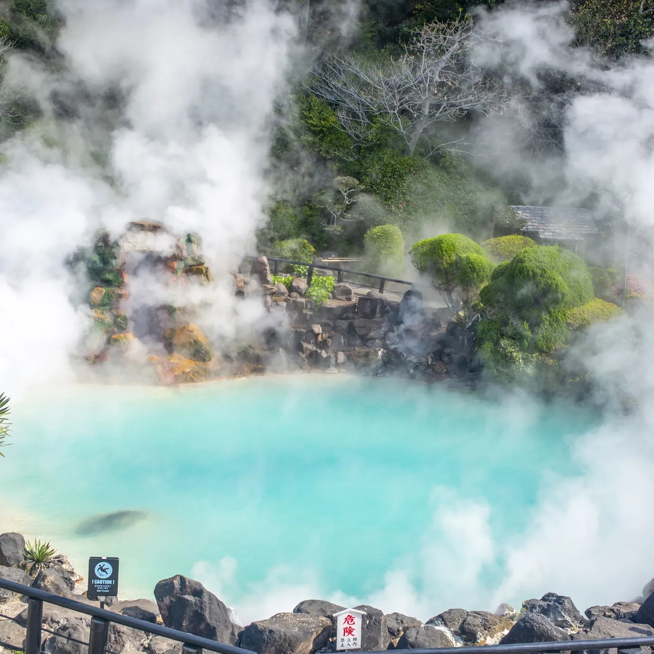 別府温泉で人気のスポットが、噴気・熱泥が立ち上る「地獄」を見て回ることができる、べっぷ地獄めぐり。コバルトブルーの温泉「海地獄」(上記写真)や約80頭のワニを飼育する「鬼山地獄」など、7つの地獄を楽しめるスポット。