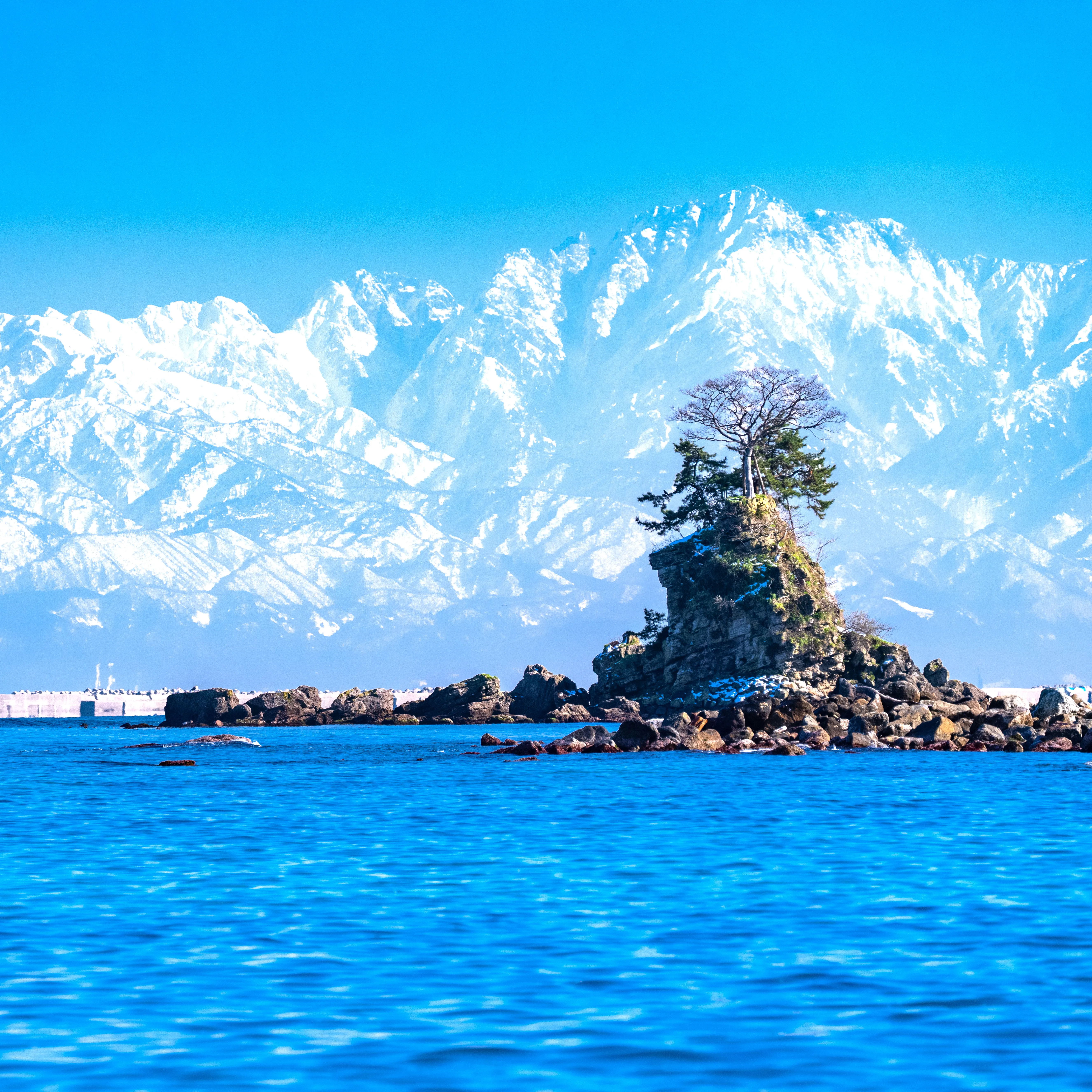 能登半島国定公園に含まれ、海越しに雄大な立山連峰を望むことができる富山屈指の景勝地。その美しさは万葉の昔から多くの和歌に詠まれるほど人々を魅了してきました。雨晴という地名は、源義経が岩陰で雨宿りをして雨が晴れるのを待ったという伝説からついたともいわれています。