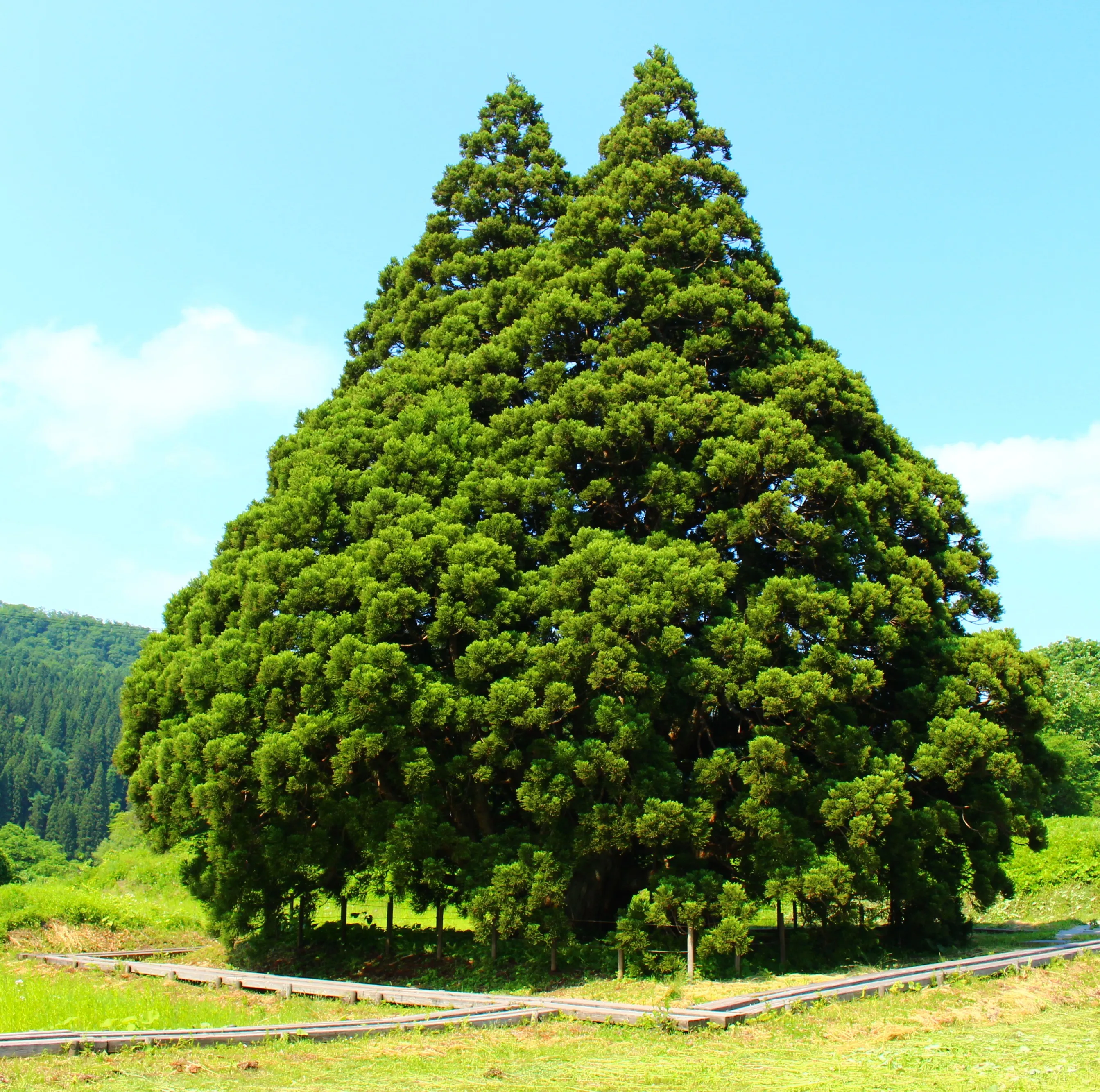 北部の鮭川村にある樹齢1,000年を超えた、高さ20mもの大樹。離れたところから見ると人気アニメ『となりのトトロ』のキャラクターに似ていることから、一躍人気スポットに。夫婦杉、縁結びの杉とも呼ばれ、夫婦で手をつないで杉の根元で休むと子宝が授かるといういい伝えもあるのだとか。