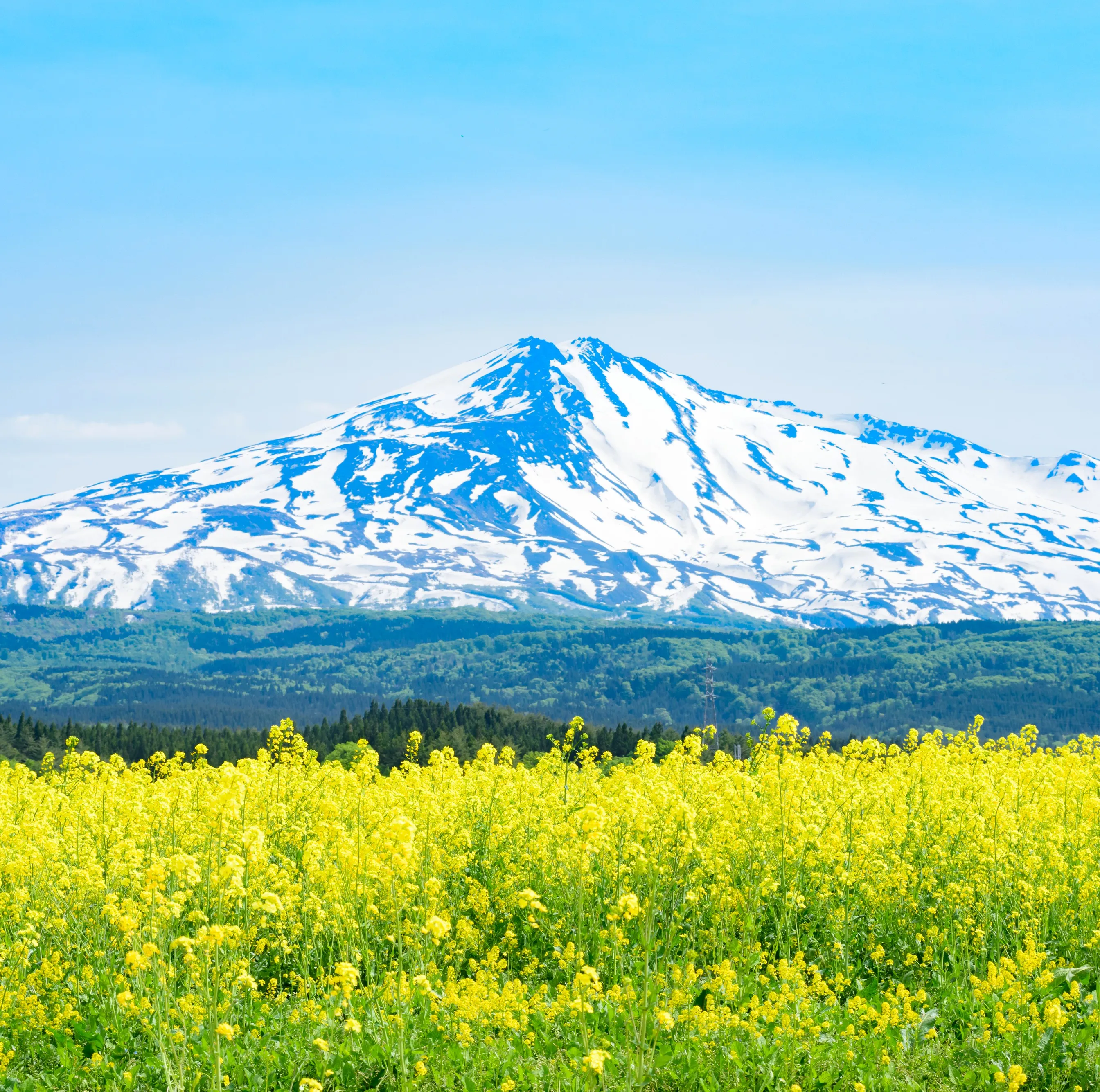 秋田県との県境にそびえ、標高2,236mと山形県最高峰を誇る活火山。雪が積もった美しい山容が富士山に似ていることから出羽富士とも呼ばれています。活火山ならではの変化に富んだ地形に200種類を超える高山植物が生息し、四季折々でさまざまな表情を見せてくれます。