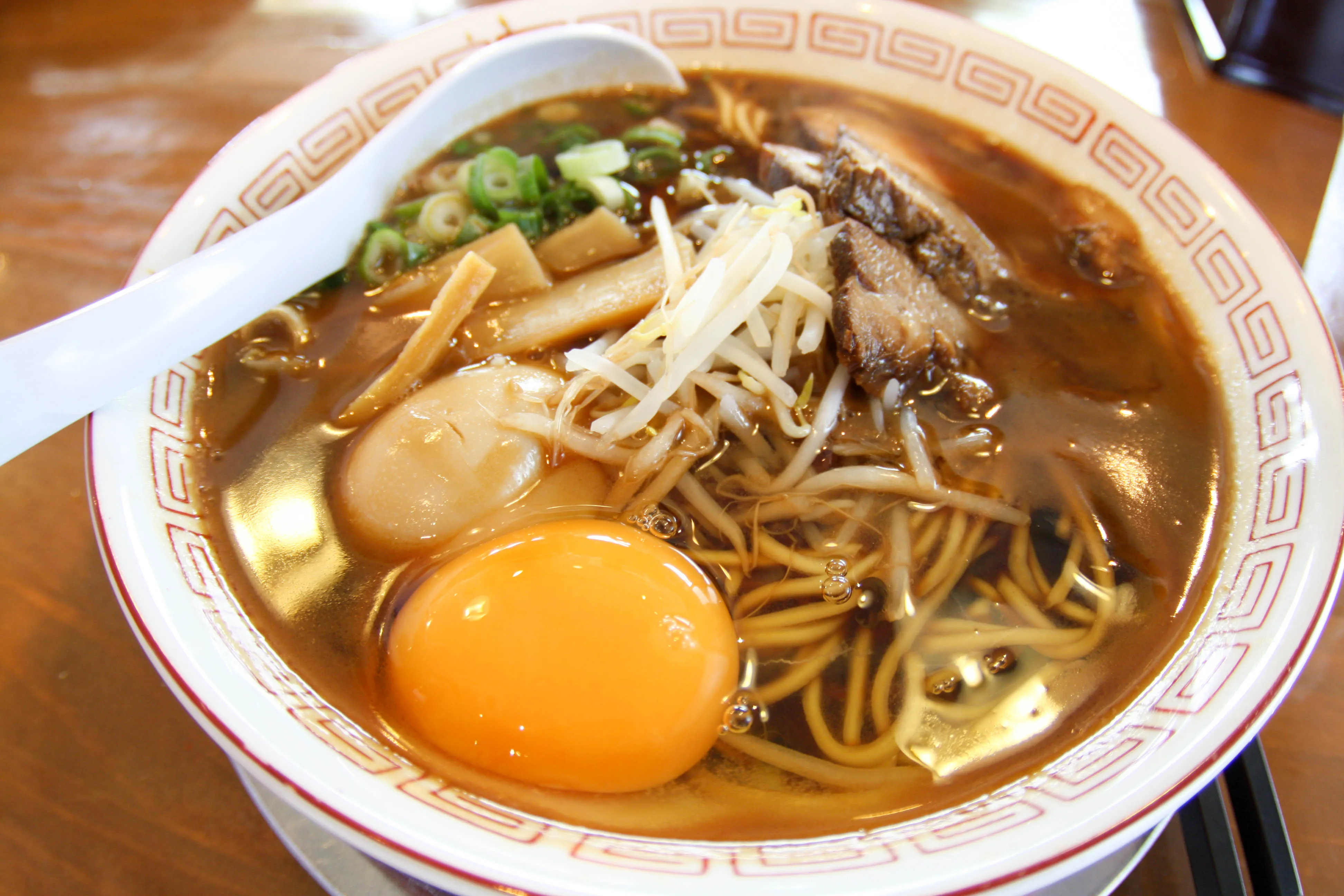 豚バラ肉や生卵がのった徳島県東部発祥のご当地ラーメン。スープは豚骨スープに濃口醬油で味つけしたすき焼き風の味わいのものから、鶏ガラ・野菜を煮込んだものなど3種類あるのだそう。