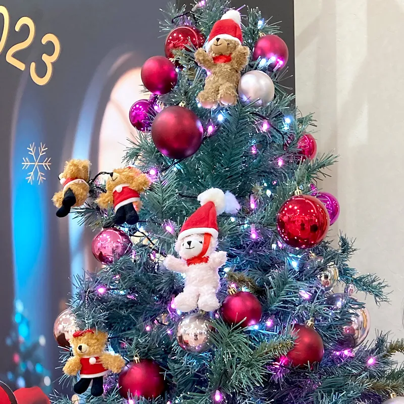 ツリーにも小さなクマサンタが飾られていてファンシー!