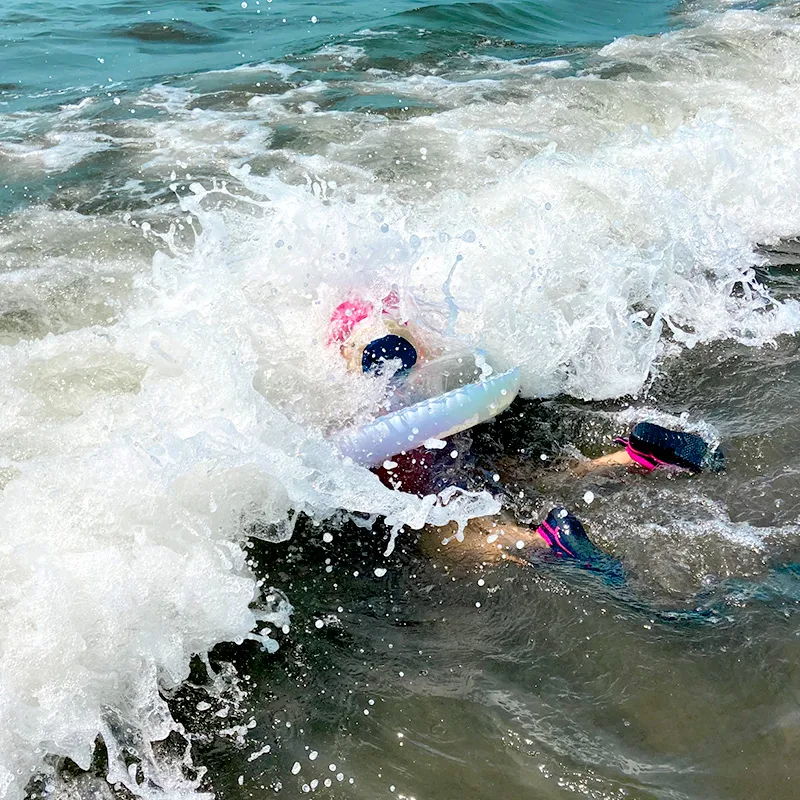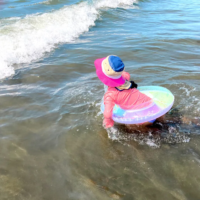 お気に入りの浮き輪を膨らませ、マリンシューズを持っていざ海水浴へ!