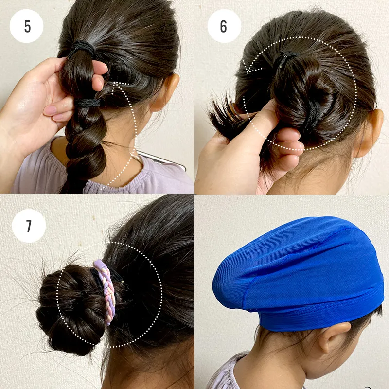 週1回プールに通っているので毎週お団子ヘアにするのですが、なかなか上手く結ぶことができず、帽子をかぶるとすぐに崩壊して、何度も娘に悲しい思いをさせてきました・・・。