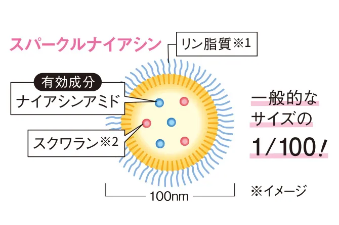 スパークルナイアシンのサイズは、なんと一般的なエマルジョンの1/100!