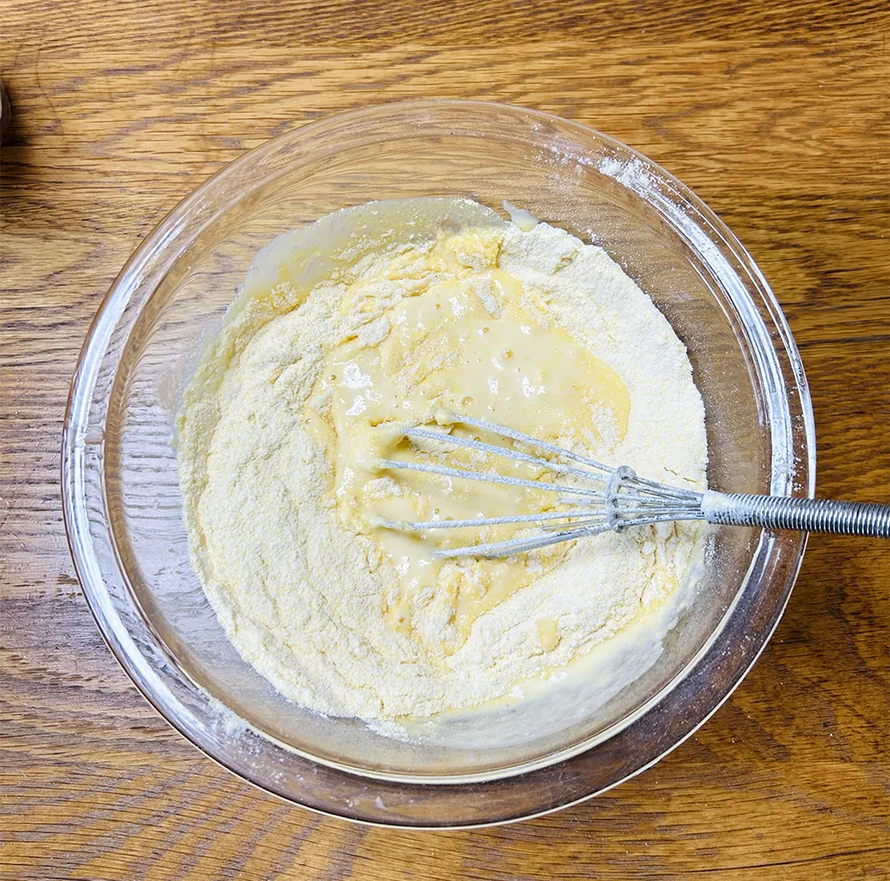 粉と液体は別々に混ぜ合わせて、最後に合流。混ぜすぎないのが、いいらしいです。
