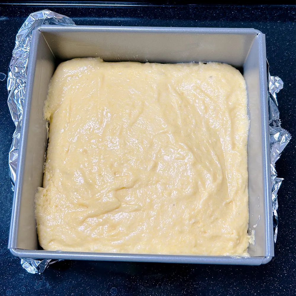 5. 型に流し込んで200℃のオーブンで20分ほど焼く(型はなんでもOK。バットでも、スキレットでも)。