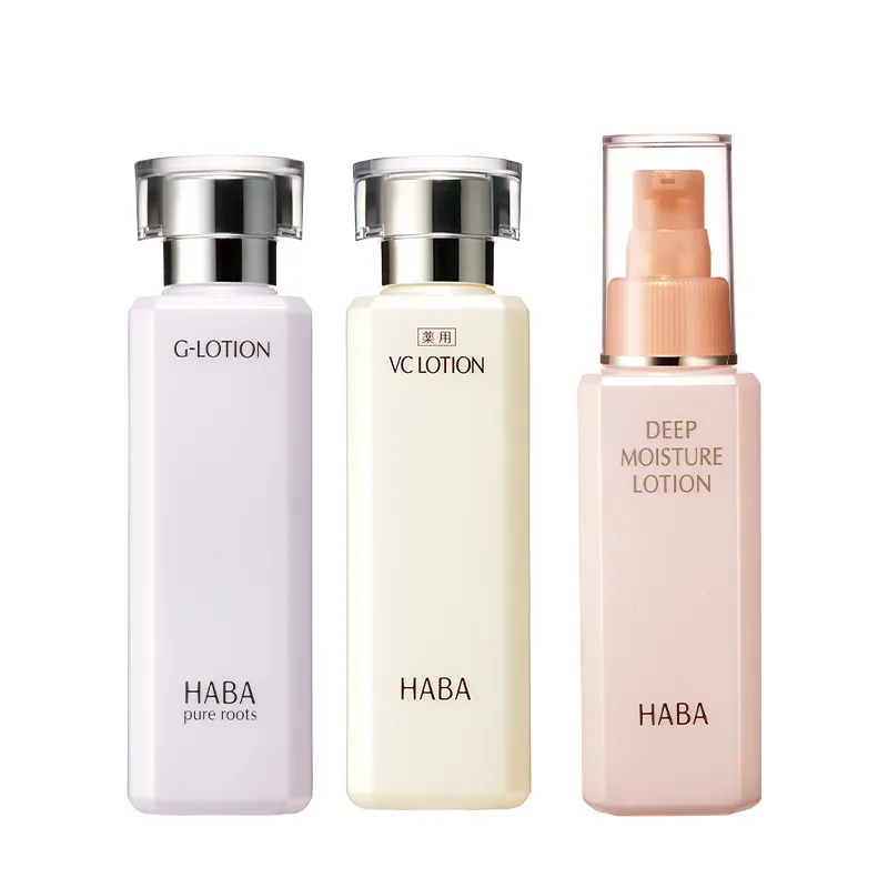 さっぱりみずみずしいハーバーのロングセラー化粧水・Gローション、有効成分ビタミンC*1配合の美白*2化粧水・薬用VCローション、保湿成分を贅沢に配合した濃厚とろみ化粧水・ディープモイスチャーローションの3種類からお好きな化粧水が選べます!