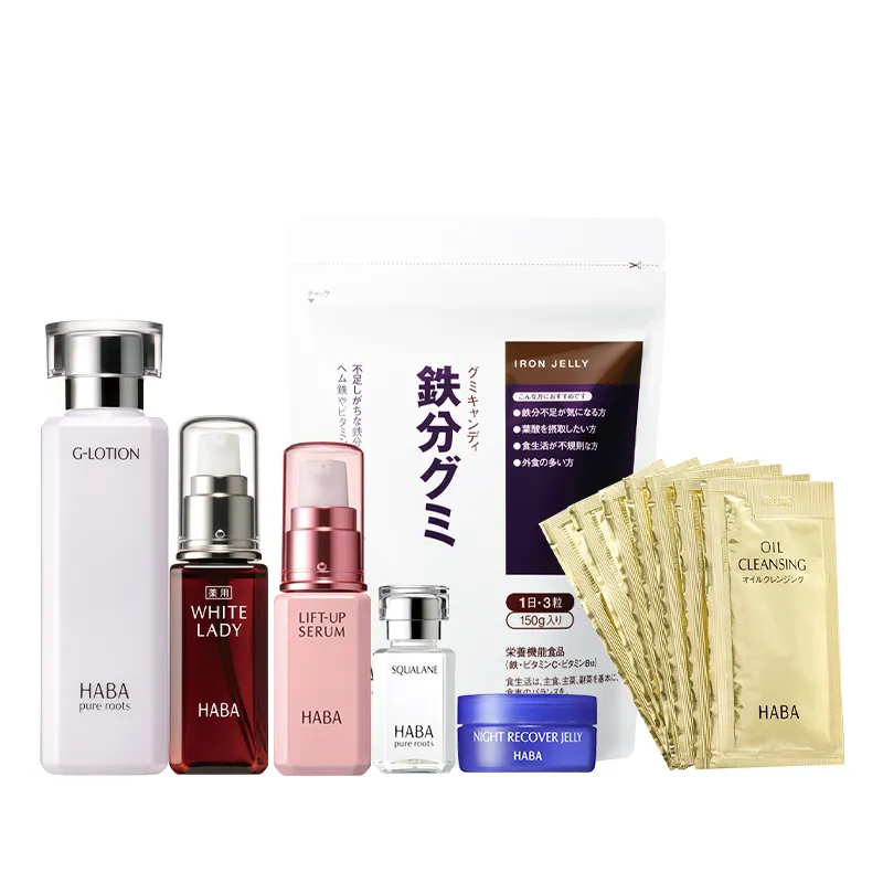 ハーバーといえば!の高品位「スクワラン」はもちろん、ハーバーの美容液の中で人気No.1の美白*1美容液、薬用 ホワイトレディやふっくら上向き肌に導いてくれるエイジングケア*2のための美容液、リフトアップセラムなど定番品のスキンケアがしっかり入っているのがうれしいポイント◎