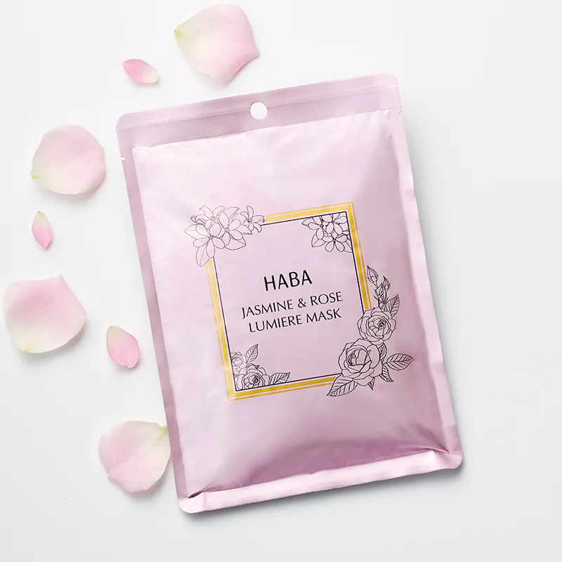 ジャスミン花エキス*1、ダマスクバラ花エキス*2、ローズ由来プラセンタ*3など美容液成分が肌にうるおいとハリを与えてくれるマスク。チャックつきのパウチにたっぷり7枚(!)入りです!