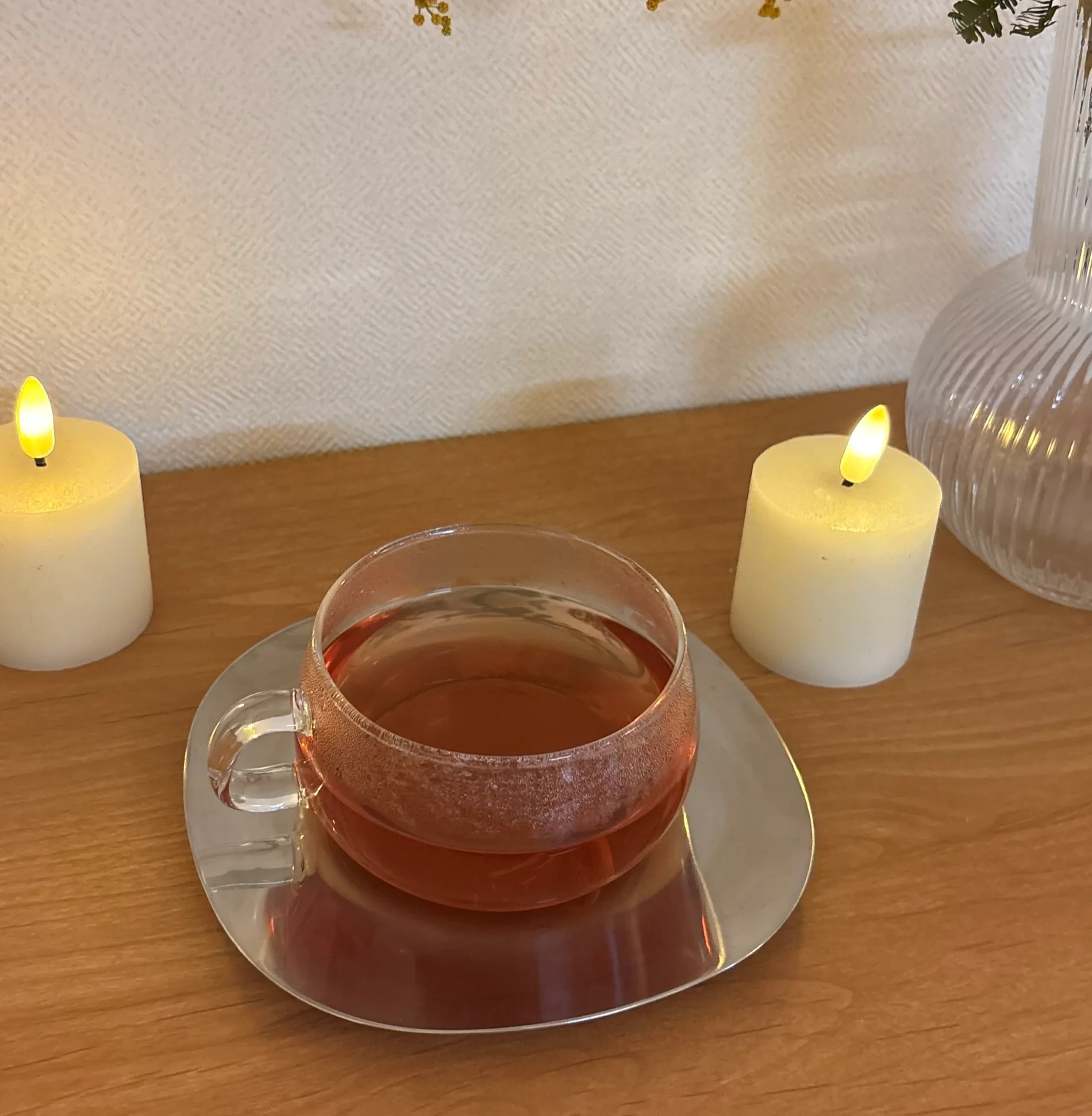 ミルクティーを飲んだり、白湯を飲んだり、その日の気分で飲み物を選んでいます。