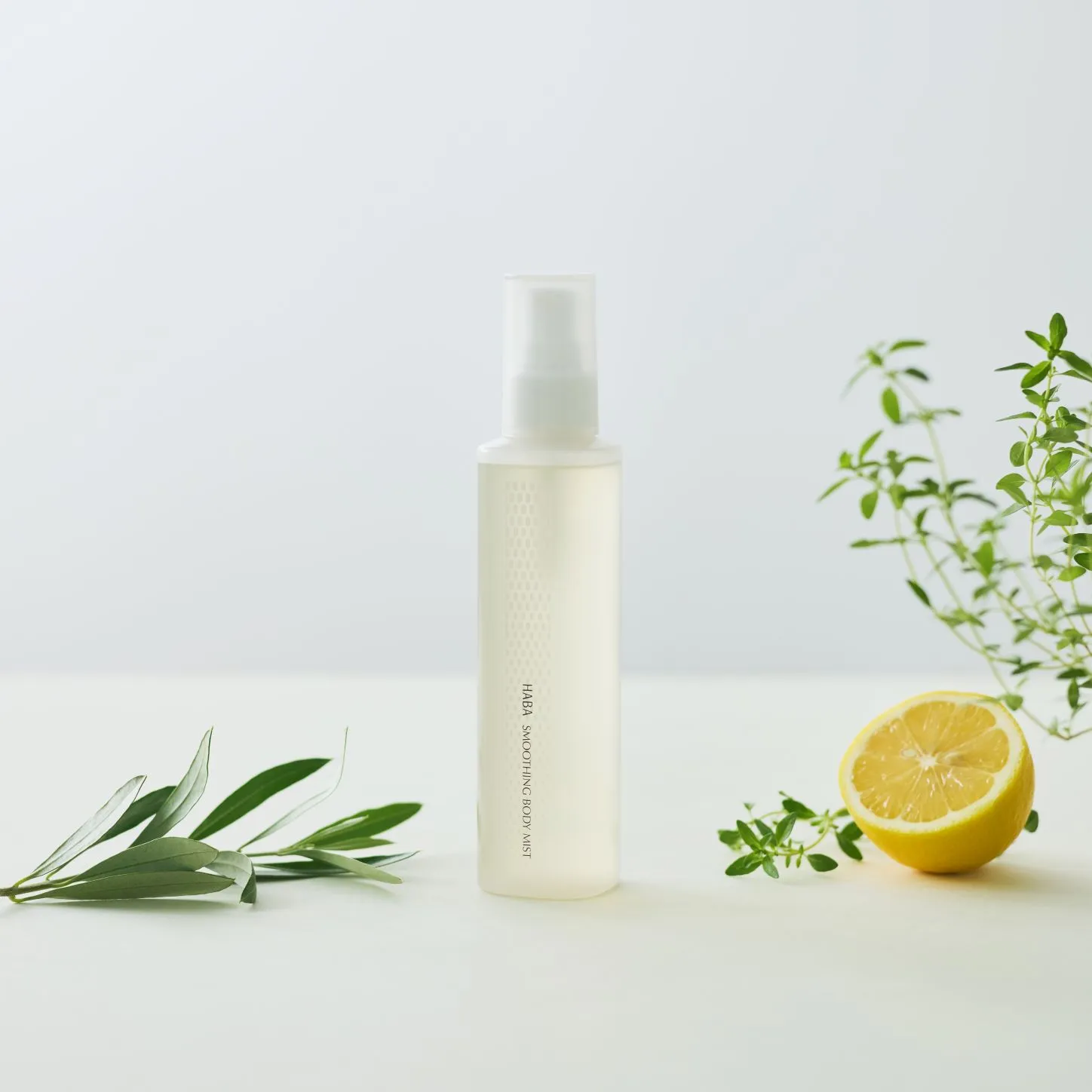 HABAスムースボディミストは、フレッシュ感あふれるレモンの香りが広がるボディ用化粧水。オリーブ葉エキス*1などの美容液成分が乾燥しがちなボディを心地よくうるおしながら、スベスベの肌に整えます。乾燥によるかゆみの予防にも◎。逆さまでも使えるポンプ仕様で、手の届きにくい背中等も簡単にケアできます。