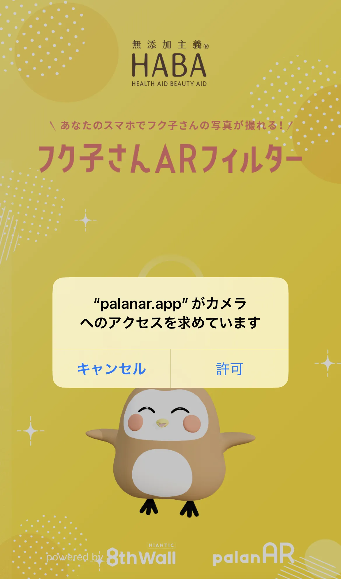 ③カメラのアクセス許可のポップアップが出たらこちらも「許可」で進めてください。