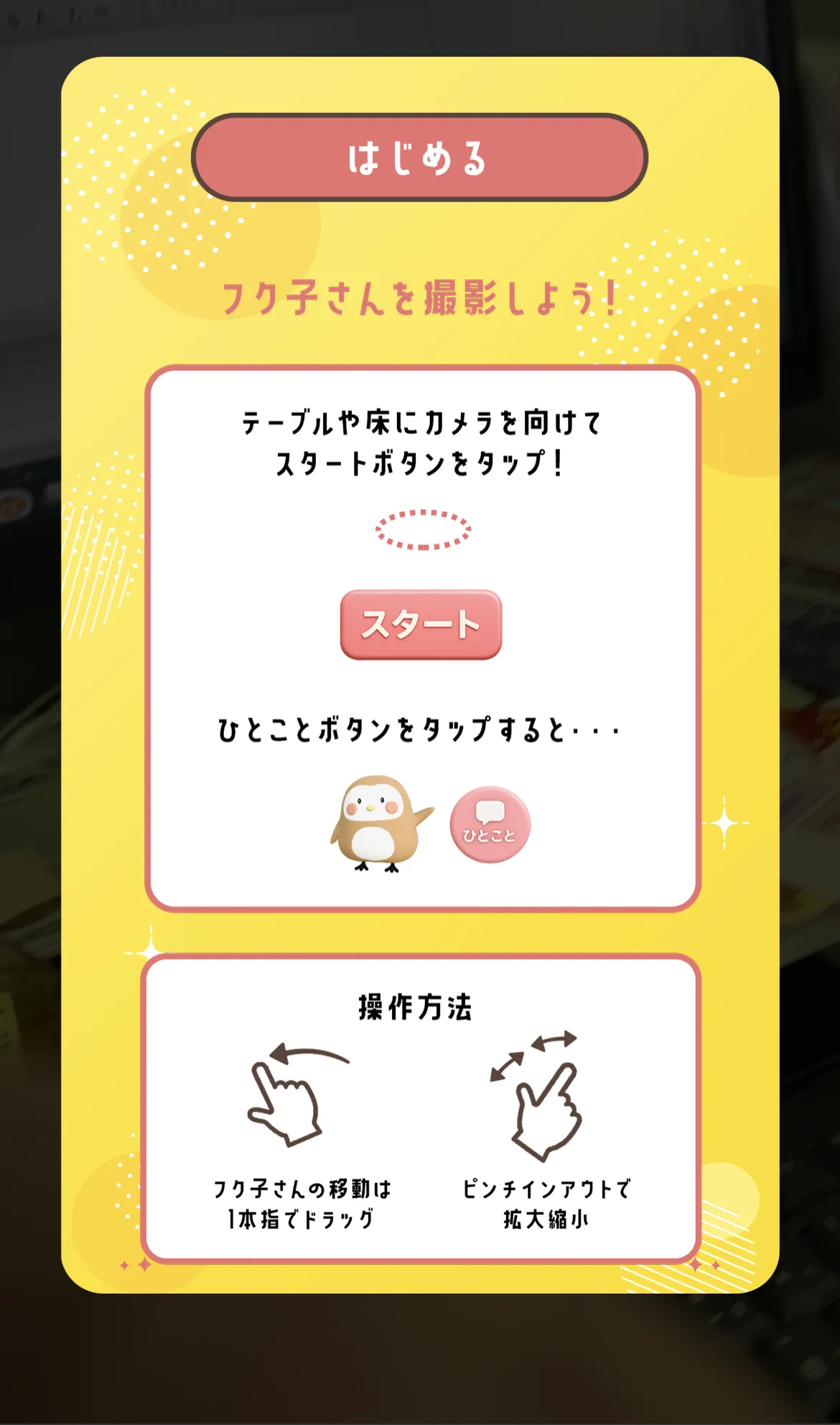 ⑥「スタート」をタップするとフク子さんが出現しました!