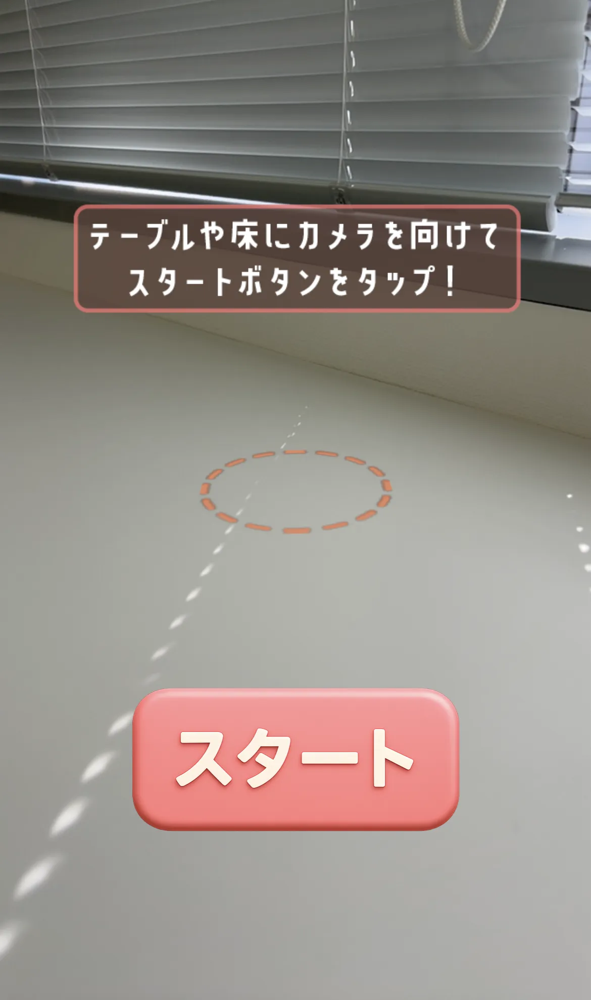 ⑤ピンク点線の○が出ている部分にフク子さんが出てきますので、「スタート」をタップしてください。